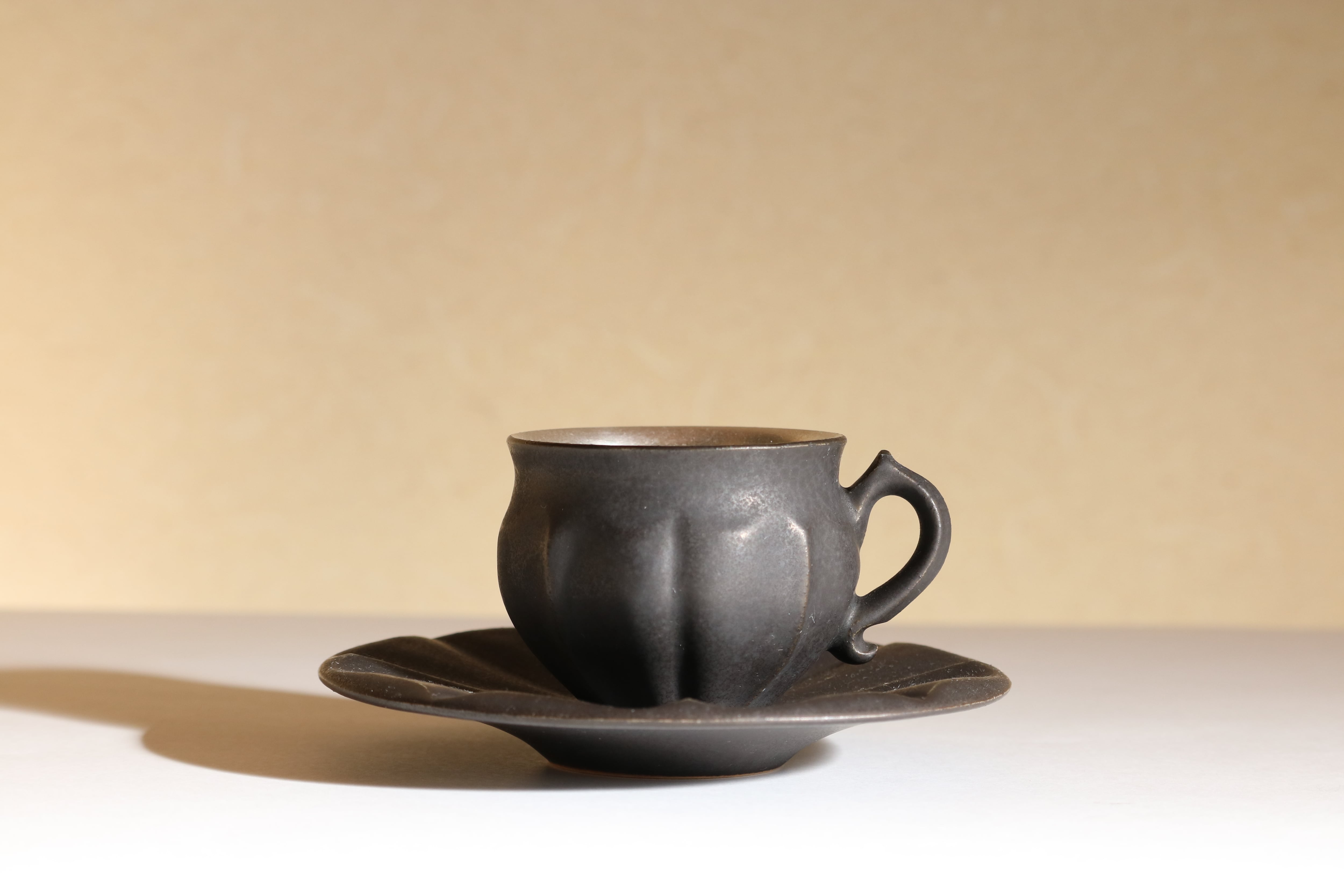 陶芸作家 東一仁さんのデミタスカップ&ソーサー。