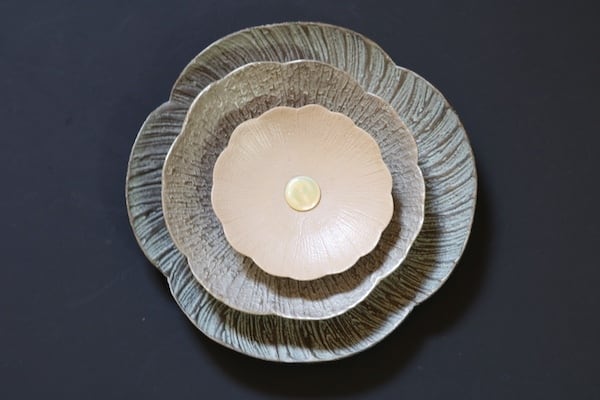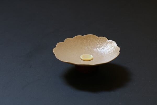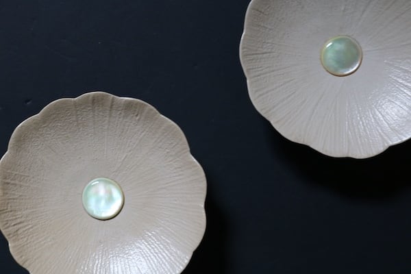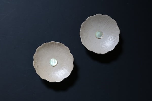 桜色の見込に螺鈿が埋め込まれとても美しい小皿で。